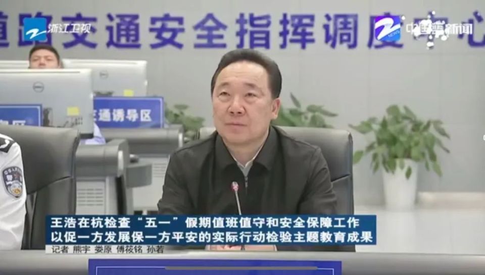 在浙江省交通安保联勤指挥部,王浩以现场抽查的方式,视频连线嘉善西塘、淳安千岛湖、东阳横店等交警指挥室。