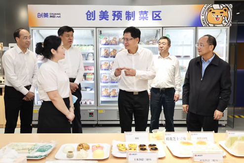 在广西创美生活供应链管理有限公司,蓝天立实地察看食品原料采购、生产加工、仓储配送等情况,要求做好重要商品供应保障和价格监测,确保节日期间市场供应充足、价格平稳,守护好群众“舌尖上的安全”。