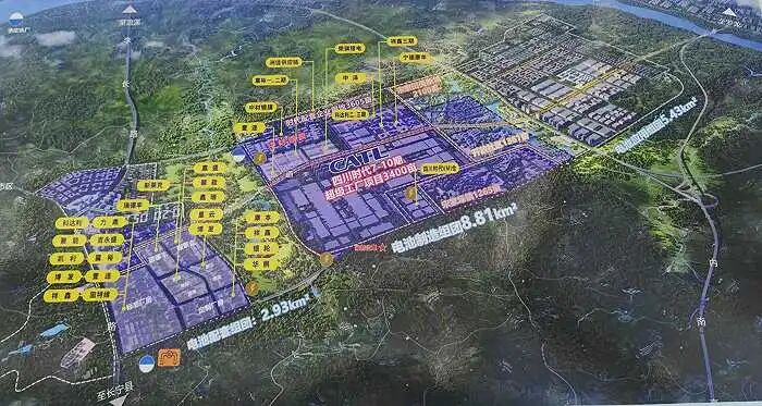 在四川时代的带动下,宜宾锂电产业集群快速形成。从长江工业园的最新展示板上可以看出,目前几乎整个园区都在为四川时代配套,包括科达利(002850.SZ)、震裕科技(300953.SZ)、中材锂膜等产业链企业相继落地该园区。