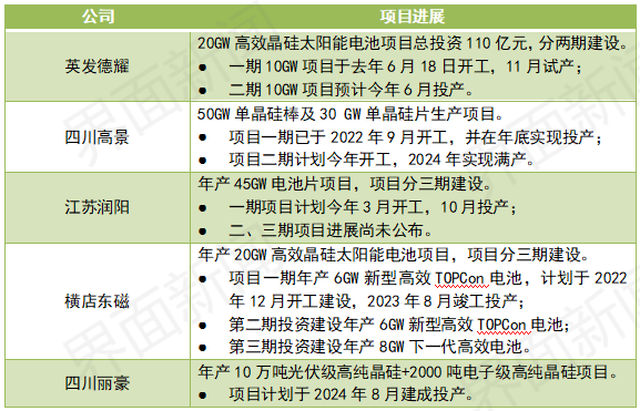截至目前,宜宾已签约晶硅光伏产业项目中,投资百亿级别的有五个,分别为英发德耀、四川高景、横店东磁、江苏润阳和四川丽豪。