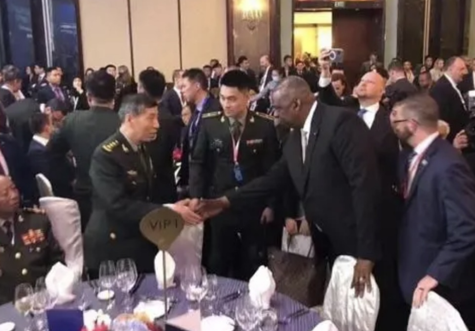 △第20届香格里拉对话会期间,美防长奥斯汀主动与中国防长李尚福握手