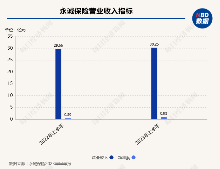截至2023年6月末,永诚保险资产总额147.37亿元,资产负债率81.56%,较期初上升0.78个百分点;净资产27.17亿元,较期初增加4.67%。2023年上半年,永诚保险实现营业收入30.25亿元,同比增加2.00%;营业支出为29.16亿元,同比基本持平。上半年净利润为0.93亿元,同比增长139.85%。