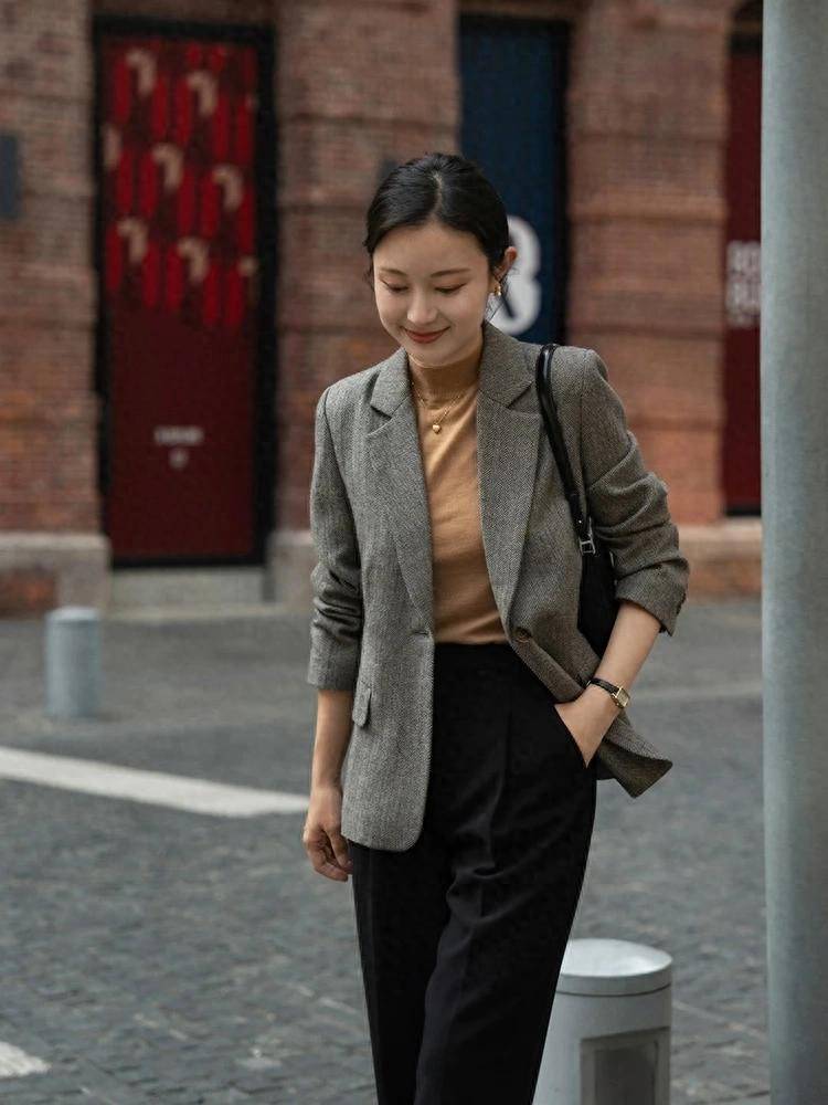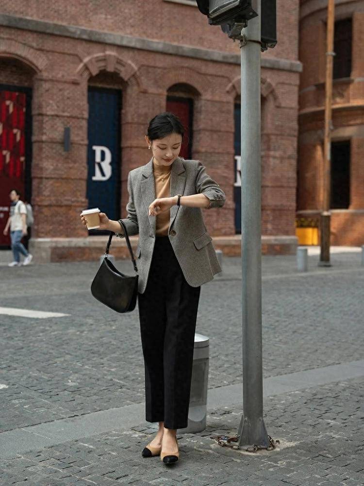 因此,西装可以说是职场女性的不二之选了,轻松彰显出干练知性的魅力,尽量选择像是黑白灰咖蓝这样简单基础的色系,更加的包容,而且作为一些正式的穿搭也更加端庄大气。
