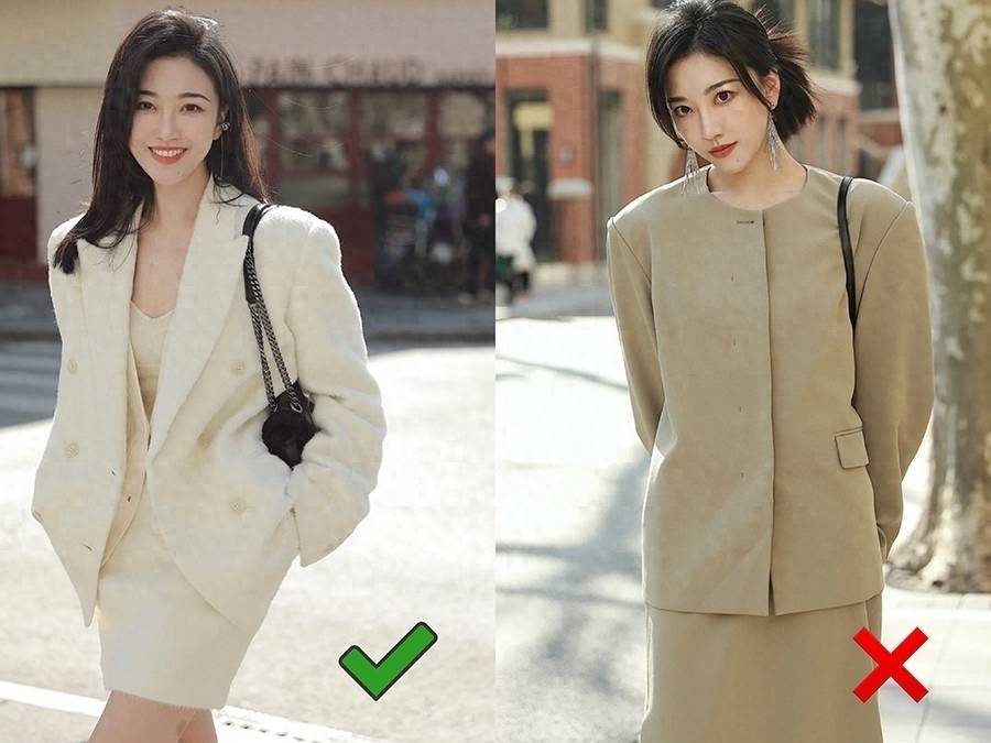 尤其是作为咱们的职场穿搭的话,尽可能的选择一些融入垫肩设计的西装,可以进一步强化咱们肩膀的线条,即使是有圆肩溜肩这样的小问题,也能够轻松掩盖住,结合上略微修身的剪裁设计之后,呈现出来的气质也更为霸气洒脱。