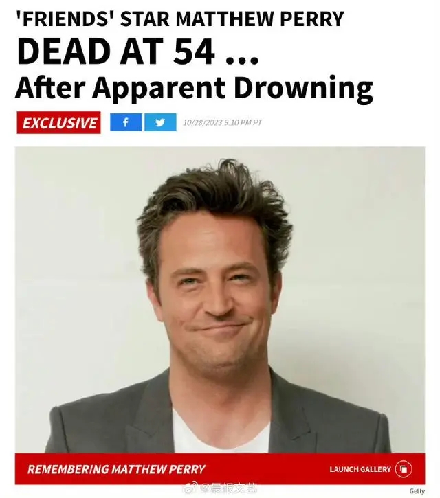 据环球网29日援引法新社、美国《纽约邮报》等多家外媒援引美国娱乐新闻网站TMZ消息称,参演美国知名情景喜剧《老友记》的演员马修·派瑞去世,年仅54岁。