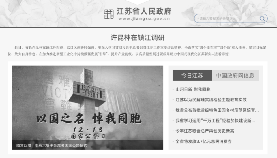 政知君注意到,江苏省政府官网、南京市政府官网、江苏卫视图标等,在今天均已变成了黑白色。
