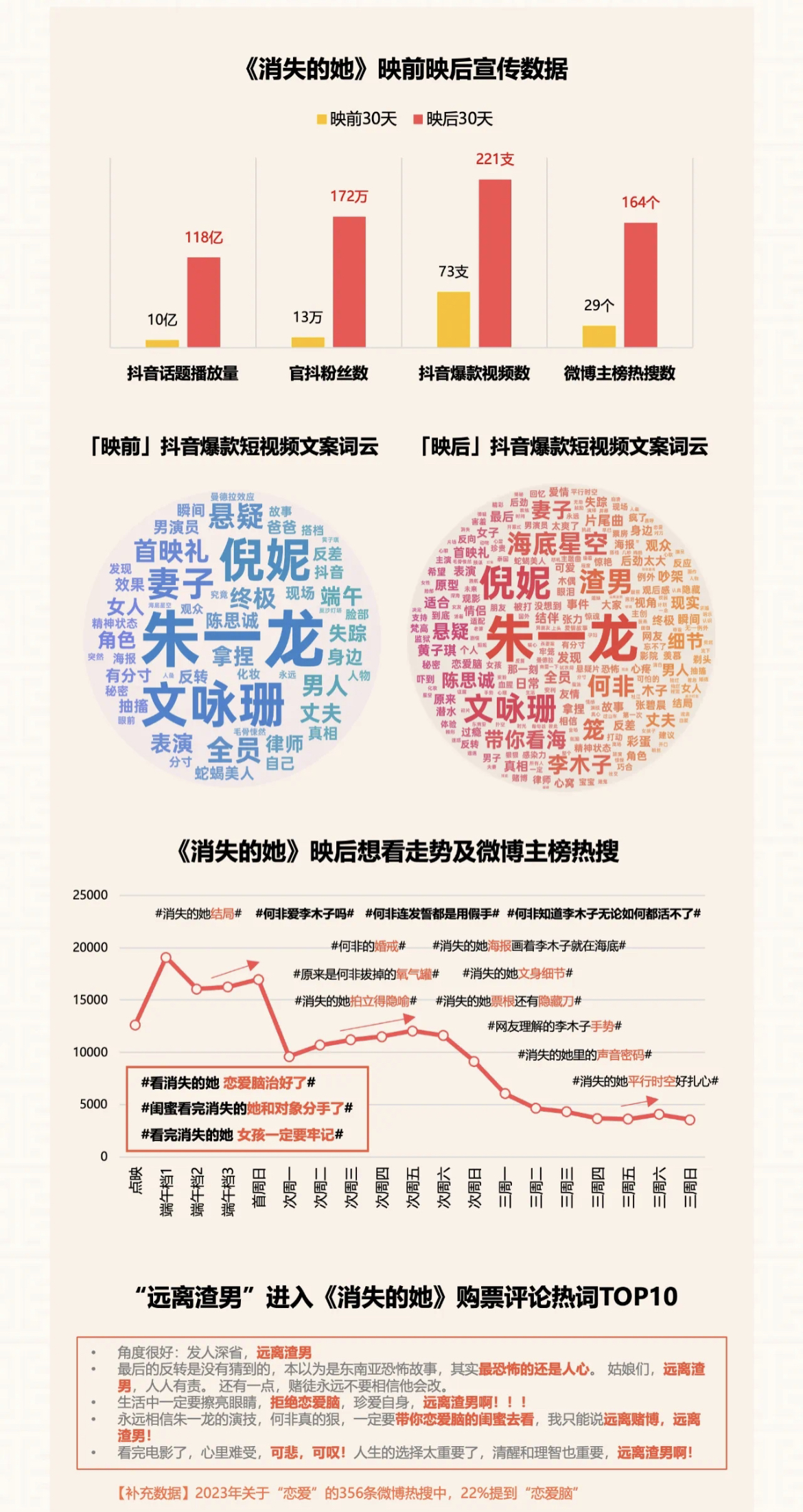 《消失的她》上映后的热度在多渠道均呈爆发式增长,观众围绕影片细节、情感、话题的解读与讨论持续反哺票房。
