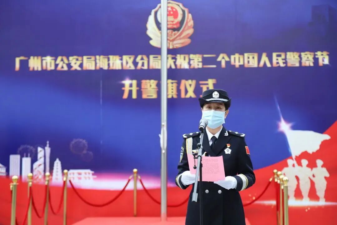 2022年1月,海珠分局举行庆祝第二个中国人民警察节暨升警旗仪式。