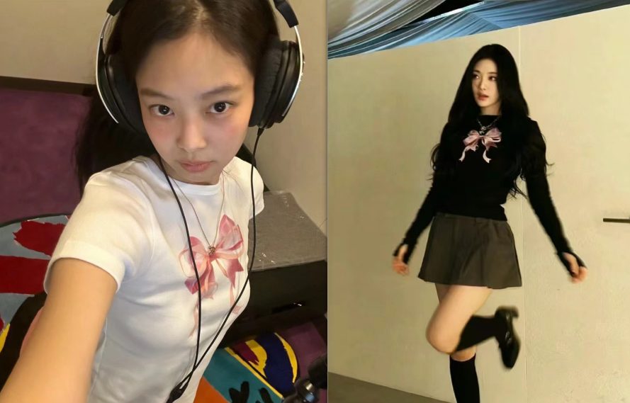 Jennie上身的蝴蝶结元素丰富,无论是在演唱会、红毯还是品牌活动上,Jennie跟蝴蝶结形影不离,不仅发饰是蝴蝶结元素,美甲也多数是蝴蝶结元素,仅仅是在自拍中露出来一小部分美甲也能被网友扒出同款,风靡美甲圈。