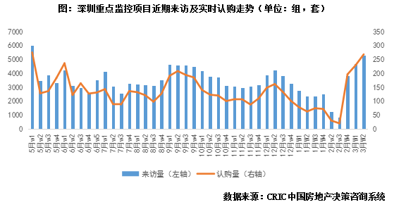 三是从前端指标项目来访、认购来看,节后快速反弹至高位:据CRIC监测的重点项目数据显示,节后2周来访量分别飙升至3830组和4711组,认购量也达到了196套和229套,3月第二周来访量和认购量分别为5300组和268套,已处半年来高位。当前流量盘周成交15-23套,已达去年小阳春水平,楼盘间两级分化严重,只有流量盘在攀升,其他盘来访、认购仍处低位。