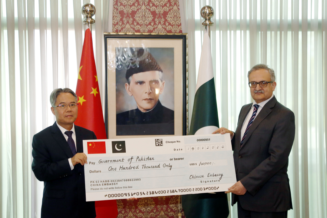 3月14日,中国政府向巴基斯坦政府提供暴雨灾害紧急现汇援助交接仪式在巴外交部举行,姜再冬大使和卡兹外秘出席。