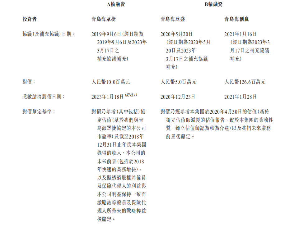 具体来看,2019年其已完成自青岛海众捷的A轮融资,对价为人民币1000万元;2021年众淼创科完成自青岛海欣盛及青岛海创赢的B轮融资,对价为人民币1.32亿元。