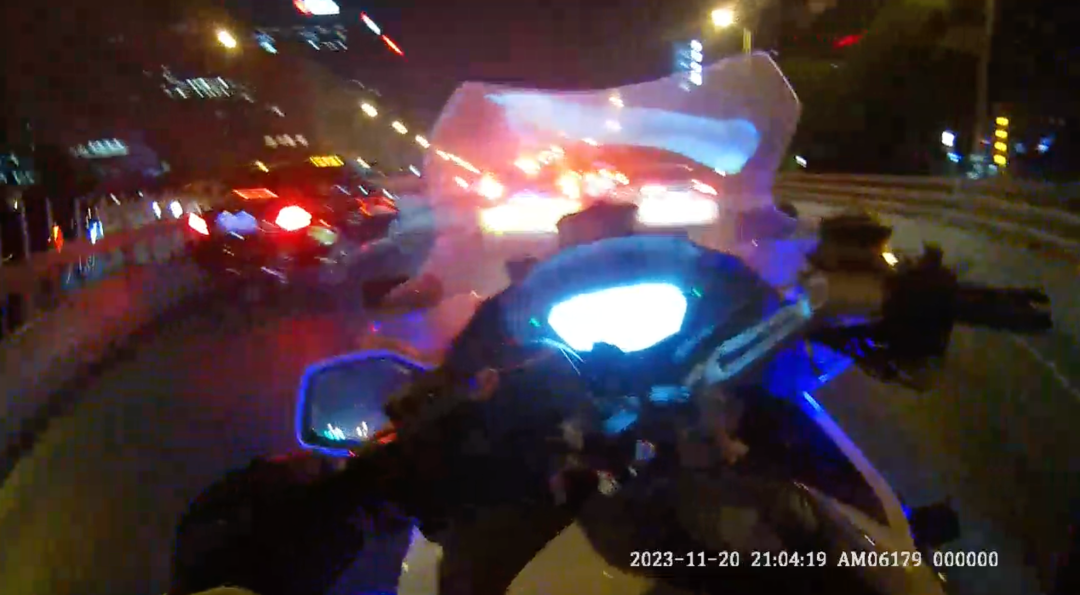 △2023年11月20日晚,计振驾驶摩托车在北京西二环主路寻找走失男孩