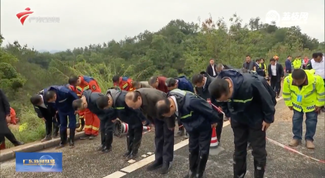 当日,黄坤明还到塌方路段抢险现场,察看灾情和搜救进展。他与在现场坐镇指挥的广东省省长王伟中和抢险救援人员一道,面向塌方灾害发生地三鞠躬,向遇难人员致以深切哀悼。