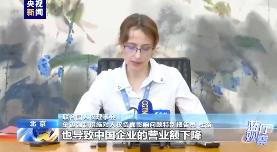 《北京日报》报道显示,阿莱娜·杜晗提到,单边制裁对企业生产、民众生活等社会经济造成不利影响,其中新疆受到的影响尤为严重,在全球市场占很大比重的棉花、西红柿等农产品,以及光伏产业等,因制裁遭受多重冲击。