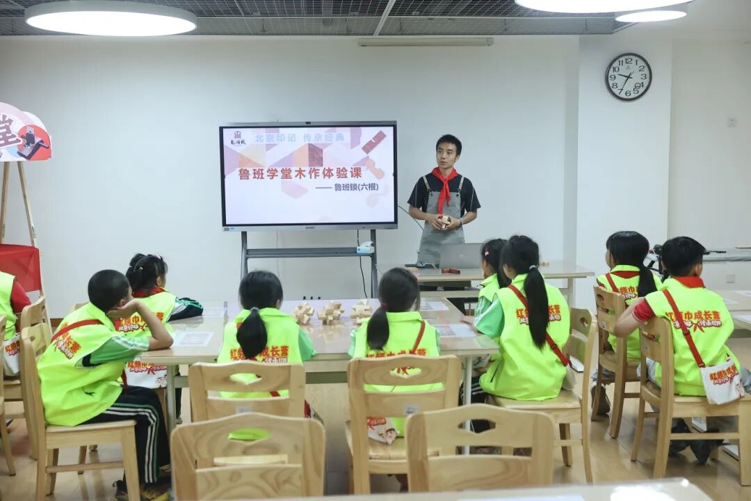在红领巾成长营的“鲁班学堂”,队员们通过学习组装“鲁班锁”来体验榫卯结构的精妙。鲁班锁是2500年前中国古人发明的益智玩具,是榫卯结构的集中展现,三维拼插,内部卯榫咬合,外观严丝合缝,易拆难装,十分巧妙。队员们迫不及待地拿起来玩,没想到看起来只是简单的6个小部件,到了手里却仿佛变成了捉摸不透的“万花筒”,小小的鲁班锁,既让队员们挠头,又让队员们着迷。有的队员一边拼装一边嘟囔:“古人怎么这么聪明呀,这是怎么设计出来的……”有的队员反复拼装拼不出来,后来经过老师的讲解拼装成功了,兴奋地喊道:“我拼出来了!我成功了!”实践出真知,队员们深深为古人的智慧所折服。