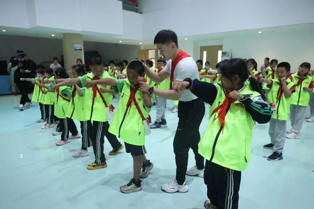 队员们上台练习教练所教的内容,用学会的拳法组合来保护自己,并深刻体会到:习武不是崇尚以暴制暴,而是强身健体、增强意志力,习得一身本领是为了更好地保护自己、保护家人、保卫祖国。