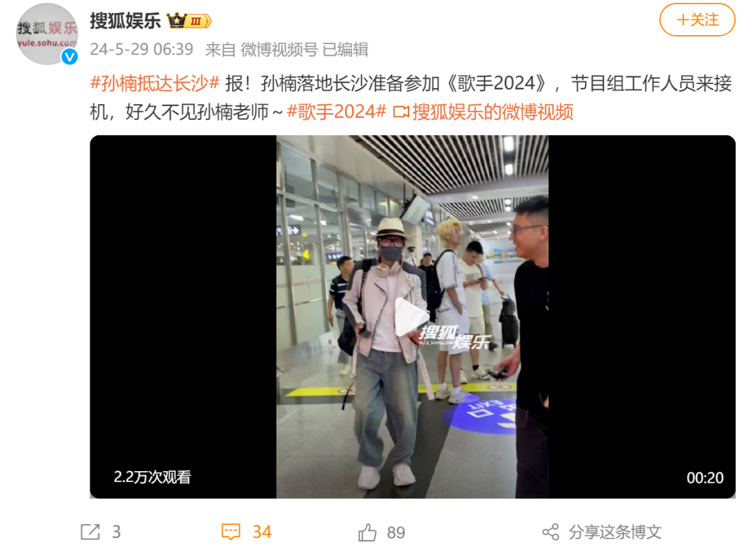 另据报道,有网友目睹孙楠已经落地长沙,准备参加节目。此前,大家纷纷猜测《歌手2024》第四期补位歌手是王力宏和孙楠,随后引发网友热议。