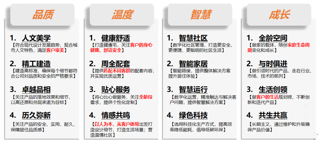 拓宽幸福边界,质造美好生活,越秀地产坚持以客户需求体验为产品打造标准,以品质、温度、智慧、成长四大定义构成越秀地产《好产品理念》内涵,坚守目标、行为、开发建造、结果呈现、服务要求这五大内容打造《好产品公约》准则,践行国企担当,成就品质标杆。