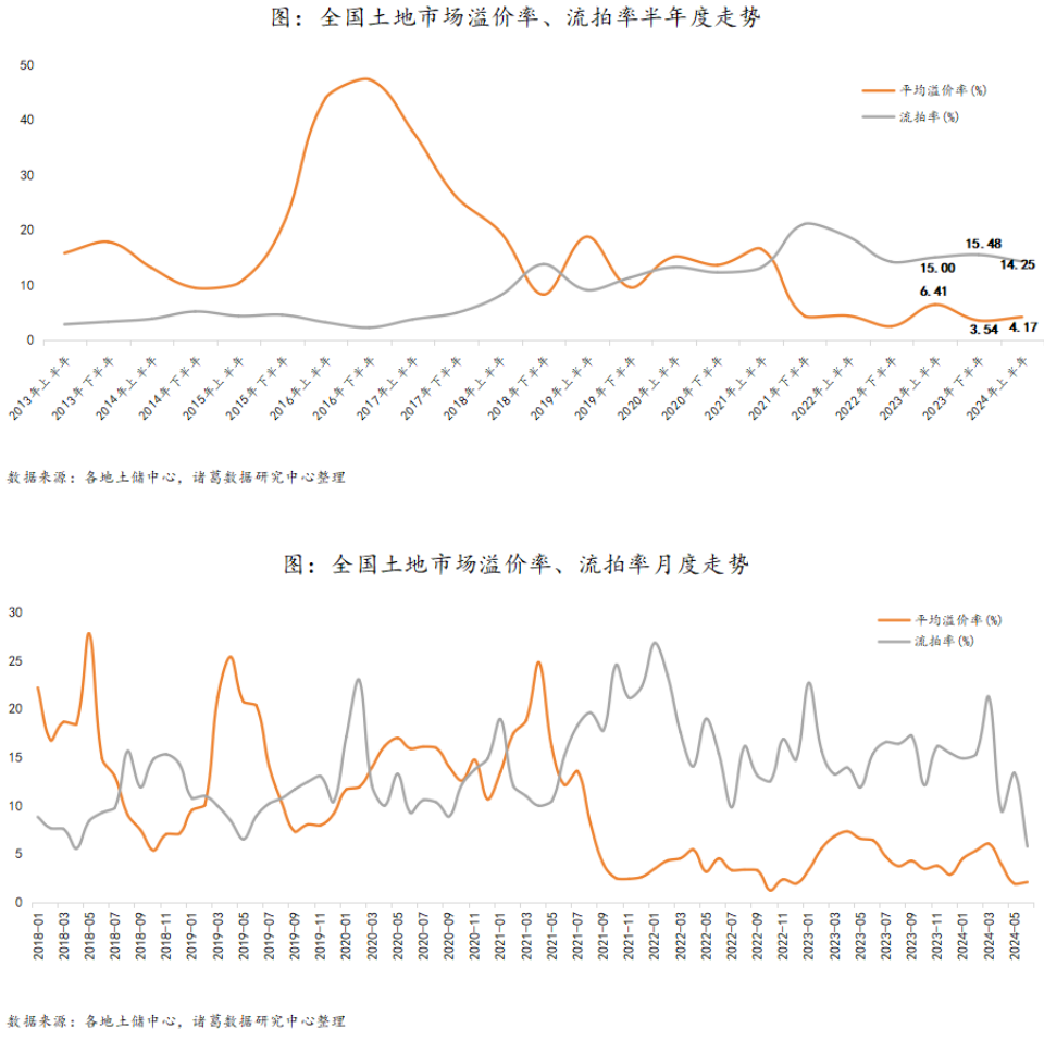 报告显示,上半年全国土地平均溢价率为4.17%,同比下降2.24%,较去年下半年上升0.63%;流拍率为14.25%,同比下降0.75%,较去年下半年下降1.23%。