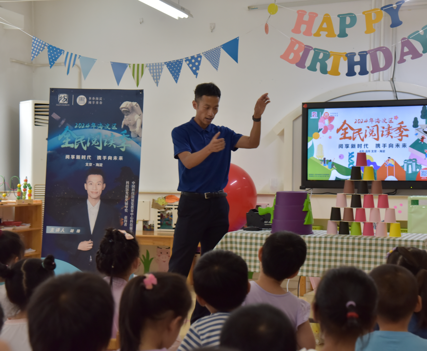 揭牌仪式结束后,“阳光北里·北青社区HUI”开展首次亲子阅读活动,以“星辰大海,梦想启航”为主题,主讲人胡杨老师为毛纺北小区社区内儿童及周边学校幼儿园的孩子们开展航天主题趣味讲座,胡老师带领孩子们走进浩瀚的宇宙世界,讲述人类探索宇宙的历程,感受中国航天科技的力量,激发起了他们探索未知、追求梦想的热情。小朋友们聚精会神地聆听,不时有人举手提问,眼神中流露出对知识的渴望。