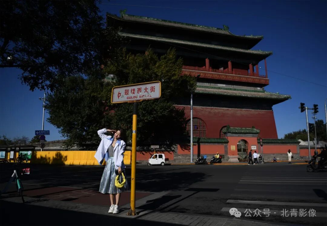 鼓楼西大街上打卡拍照的游客(2020年10月) 摄/北京青年报记者 郝羿