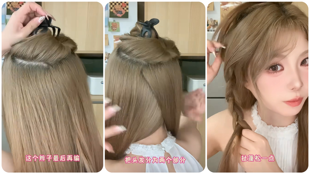 水母麻花辫是发量少、发缝明显星人的福音,俏皮可爱又带着松弛感,一起来跟着博主@来一小碗 学习一下欣欣的发型小心机吧~