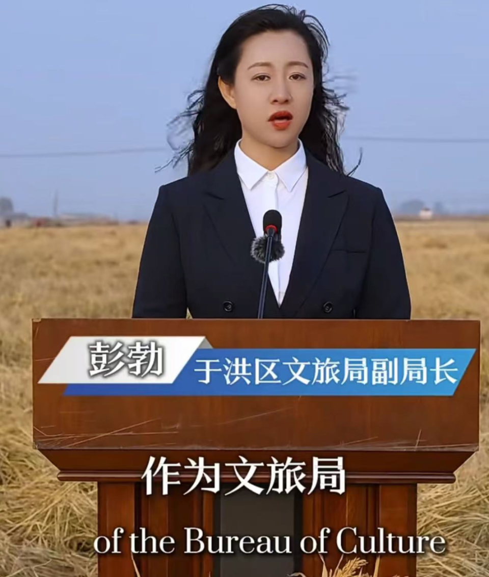 政知君注意到,此前,彭勃曾出镜推介当地旅游。今年9月,沈阳广播电视台沈阳之声推出2024爱沈阳“秋韵情意浓 沈阳别样红”文明旅游新场景全攻略全媒体直播节目。彭勃以“于洪区文旅局副局长、文明旅游推荐官”的身份进行介绍,她说:“在这个万物皆可抒情的秋天,于洪文旅盛情邀请您来于洪,观一观文明厚重,品一品人间烟火,看一看山河远阔。”