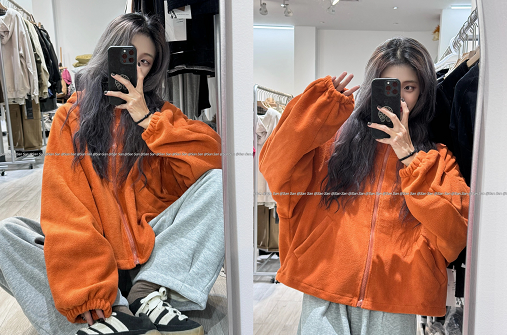 橙色摇粒绒外套+灰色加绒卫裤