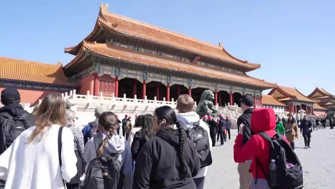 2024年初,访华学习交流的美国中学生代表团在北京打卡故宫等多个文化地标