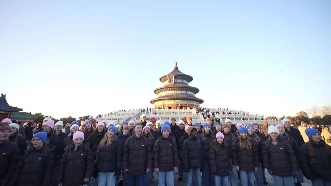 2025年初,美国儿童合唱团在北京天坛祈年殿前齐声合唱中文歌曲