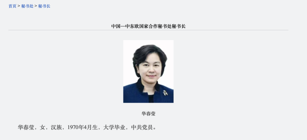 中国—中东欧国家合作秘书处官网更新显示,外交部副部长华春莹已兼任中国—中东欧国家合作秘书处秘书长。