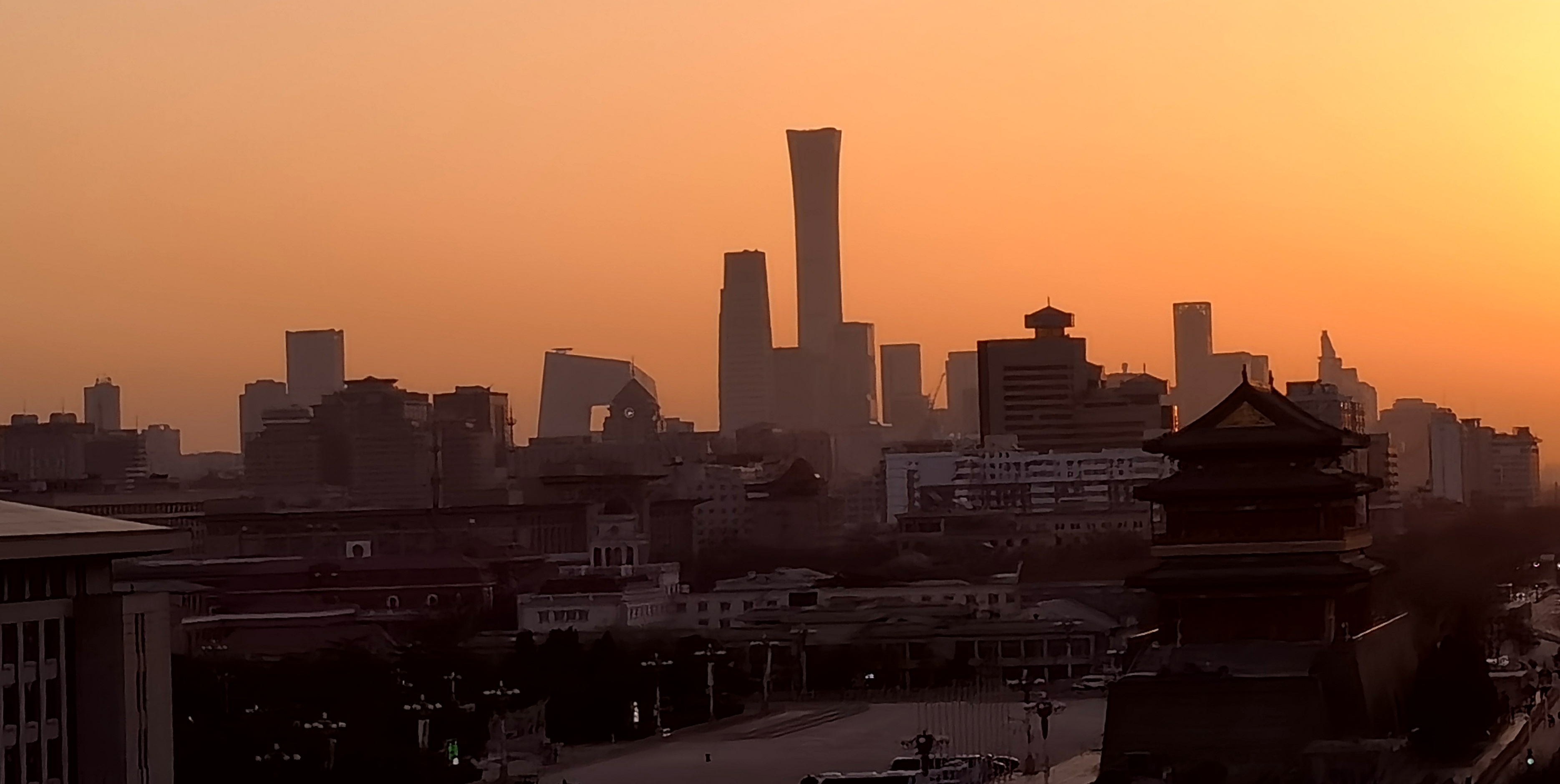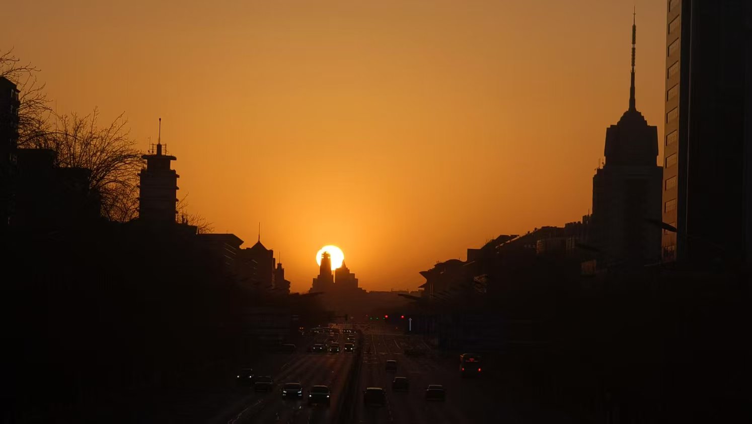 晨光破晓,北京天际线在金红色晨曦中苏醒
