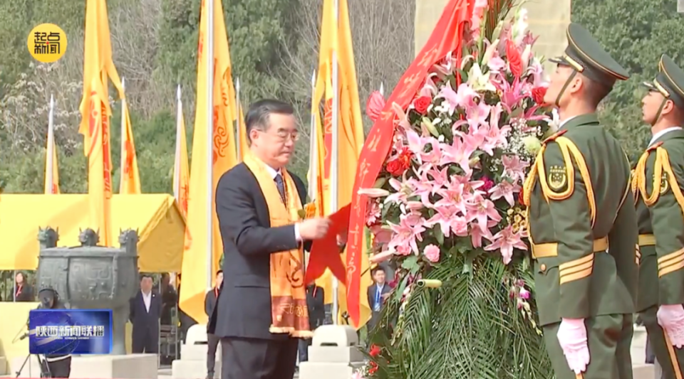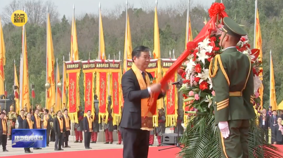 全国人大常委会副委员长张庆伟,全国政协副主席何报翔,陕西省委书记赵一德、陕西省省长赵刚、海峡两岸关系协会会长张志军、新党主席吴成典等参加公祭典礼。
