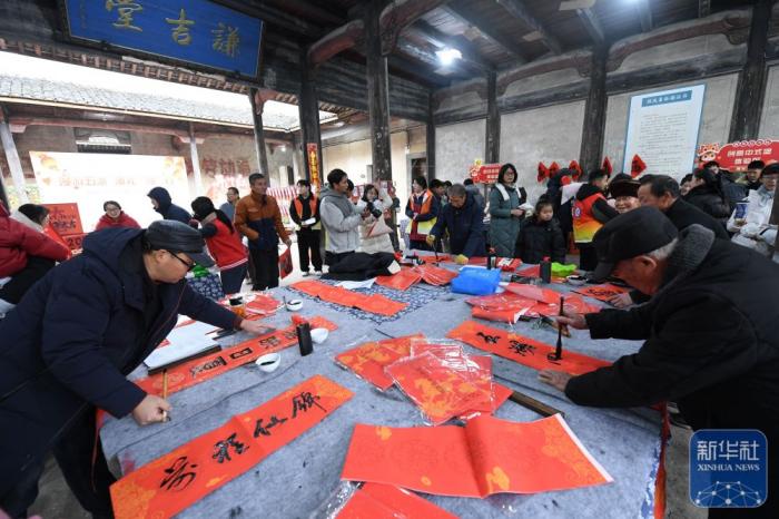 新春将至,浙江省诸暨市五泄镇在古民居内开展了一场迎新活动,将传统年俗和共富产品展销结合,营造浓郁的节庆氛围。