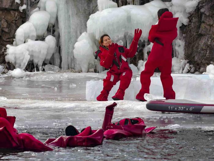 趣图|“冰浮”运动冬季户外新玩法,引爆青年打卡潮