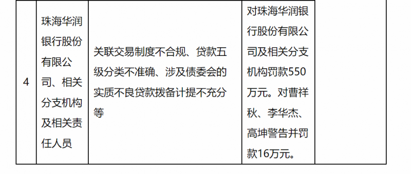 具体来看,华润银行主要违法违规事实包括:关联交易制度不合规、贷款五级分类不准确、涉及债委会的实质不良贷款拨备计提不充分等。