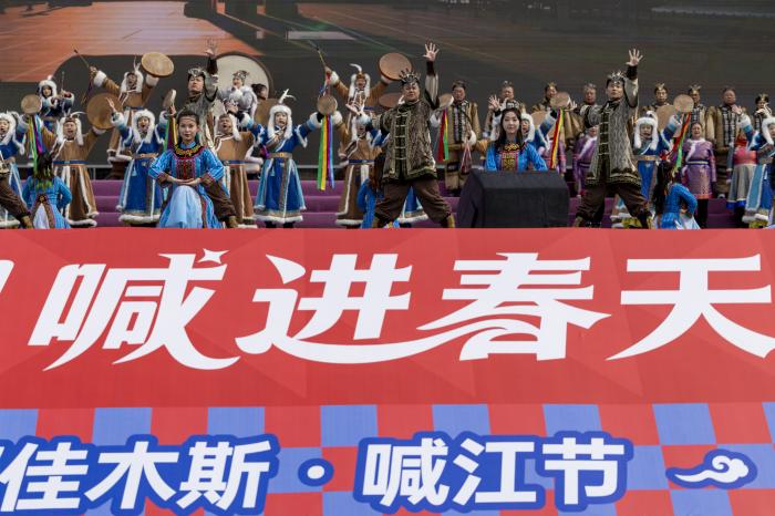 4月10日,2026“趣”佳木斯·喊江节在黑龙江佳木斯市启航广场启幕。“喊江节”即在开江季将江水“喊醒”,祈祷百姓安康、风调雨顺。