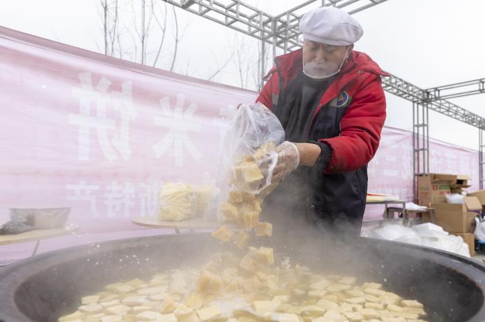 4月10日,商家在2026“趣”佳木斯·喊江节现场制作传统美食。新华社记者 张涛 摄