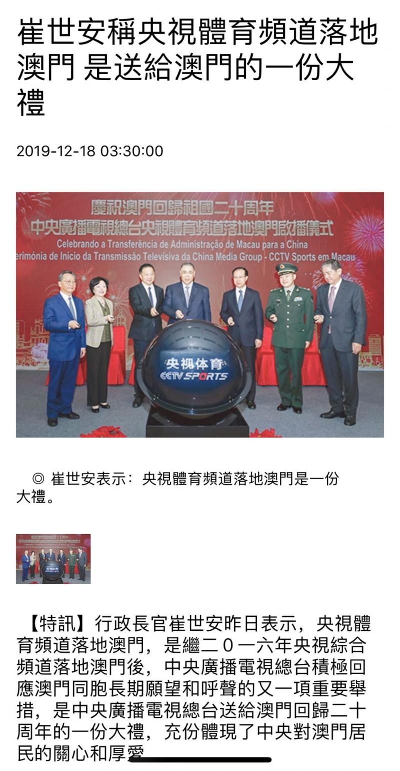 澳门媒体广泛报道总台央视体育频道落地澳门