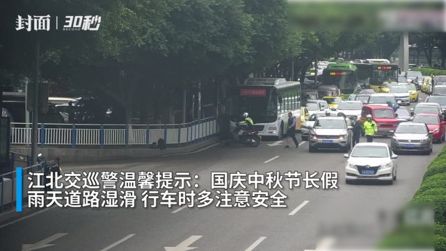 事故导致摩托车驾驶人轻微擦伤,摩托车、小轿车车身均有不同程度受损。根据监控视频和现场痕迹判断,摩托车驾驶员在本次事故中负全部责任。江北交巡警温馨提示:国庆中秋节长假,雨天道路湿滑,行车时应多注意安全。