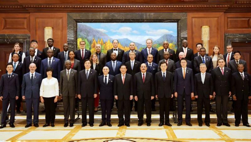 外交部副部长谢锋和外国驻华使节们一起参观“奋进新时代”主题成就展