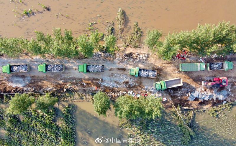 河南浚县新镇的卫河决堤口险情再次升级。中青报·中青网记者今天(25日)下午在封堵决堤的现场看到,因为土质松软,决口东侧堤坝连续发生垮塌,原本被缩短到只剩四五米的决口再次扩大。填满石块的钢筋笼一入水就被冲到几米外,数辆渣土车和校车被投入水中也未能封堵住决口,抢险难度非常大。为尽快封堵决口,现场抢险救援力量正着手向东侧堤坝转运机械与石料、钢筋,准备从东西两侧同步围堵。此前,因东侧堤坝道路狭窄,抢险机械难以投入使用。中国安能等抢险救援队伍紧急使用动力舟桥将部分机械转运至东侧堤坝。