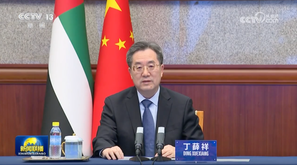 当日,中共中央政治局常委、国务院副总理丁薛祥在北京通过视频方式同阿联酋副总统曼苏尔共同主持了上述会议。