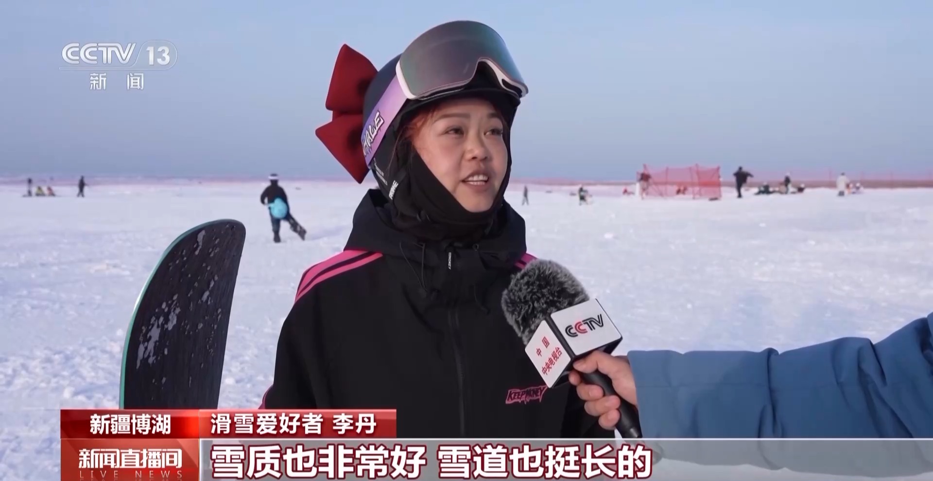 滑雪爱好者 李丹:雪质非常好,雪道也挺长的,风景也挺美的。