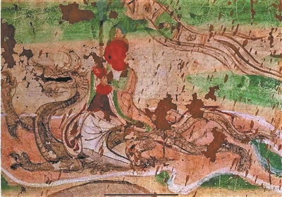 这里,我们能够明显地感受到:画中龙的地位似乎并不高,甚至还被墓主人当成“代步工具”骑在身上,这与通常认知中高高在上的神龙形象有很大偏差。这是什么原因呢?