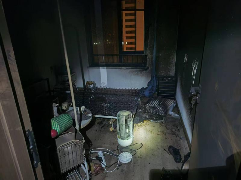 仅隔2日,在1月3日5时47分,社区居民任女士家中发生火情,万幸的是居民发现报警及时,在消防救援人员到场前社区微型消防站第一时间进行处置,现场仅卧室床铺起火。据任女士回忆,当时在睡梦中,她突然惊醒,就看到床尾处有火光,仔细一看,被子已被引燃,明火正向上蹿升。
