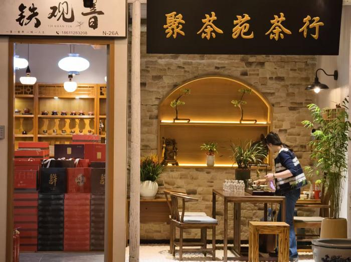 这个经营面积约6342平方米的茶村,以“茶+文旅”融合为特色,搭建多元场景,49家风格各异的茶文化空间可谓一步一景,一店一色。