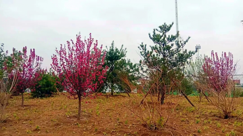 公园绿化区域草木葱茏,各类苗木长势良好。