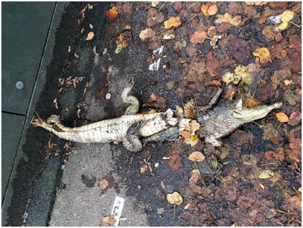 英国街头惊现“被肢解”鳄鱼 原来是个玩笑